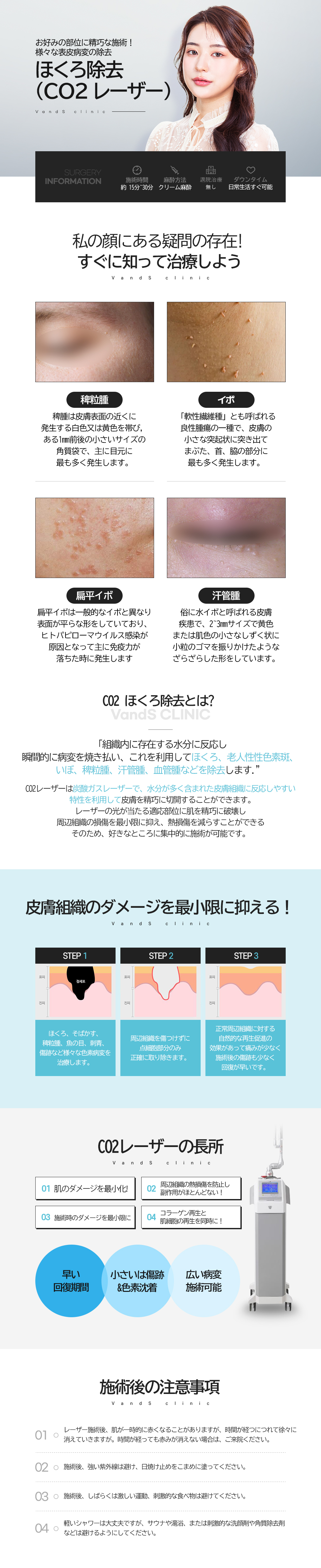 Q. 完璧に除去できますか? A. 目に見える病変が除去されていても、管理状態によって再発する可能性はあります。日焼け止めを必ずご使用いただき、定期的な施術で継続的にケアすることをおすすめします。